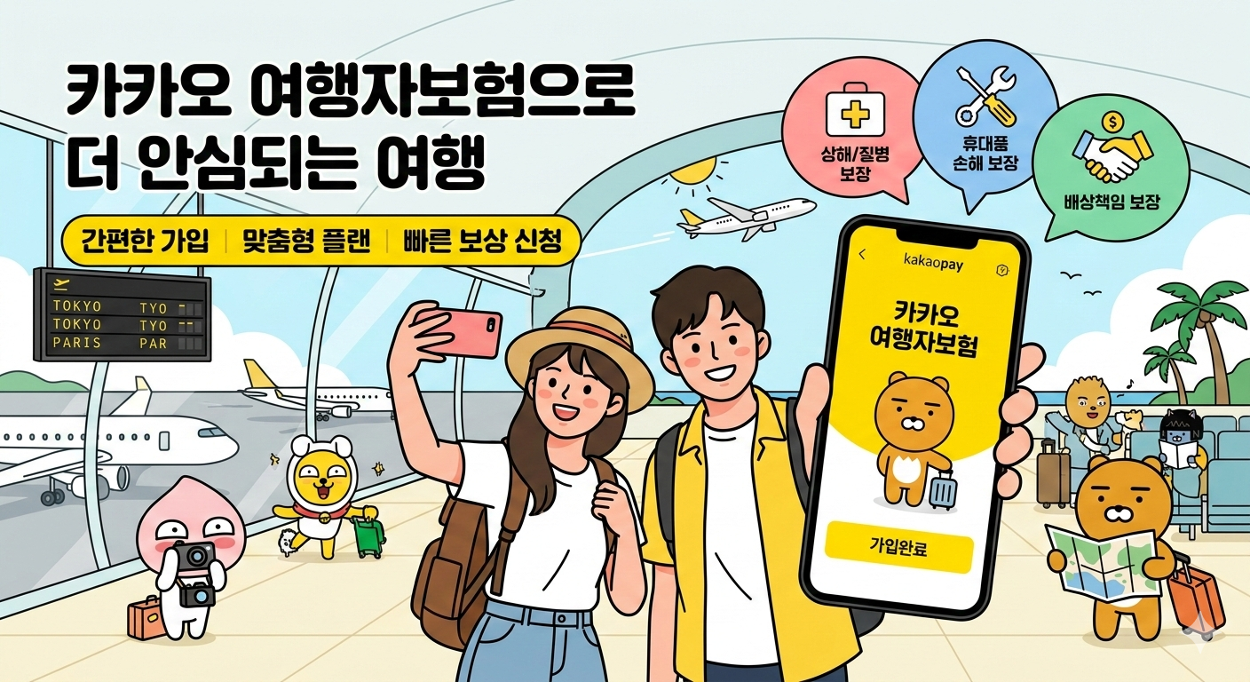 해외여행 중 갑작스러운 사고나 질병으로 수천만원 의료비 청구받는 상황, 상상만 해도 끔찍하지 않으신가요? 카카오 여행자보험은 스마트폰으로 3분 만에 가입 가능하며, 최소 5천원대부터 든든한 보장을 받을 수 있습니다. 지금 바로 출발 당일이라도 가입 가능한 실시간 보험 혜택을 확인해보세요.